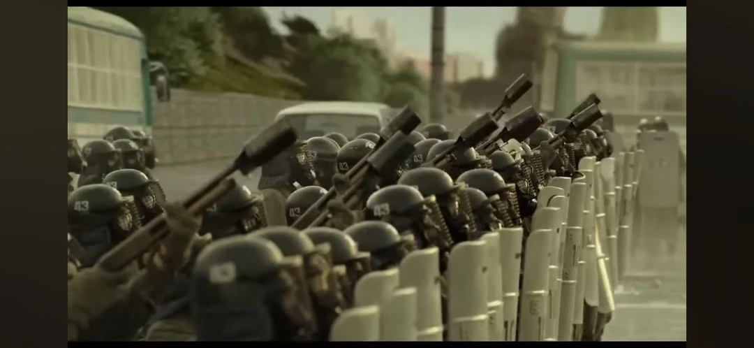 그러다 전경들쪽에서 같자기! 총들어!!!! 그러더니