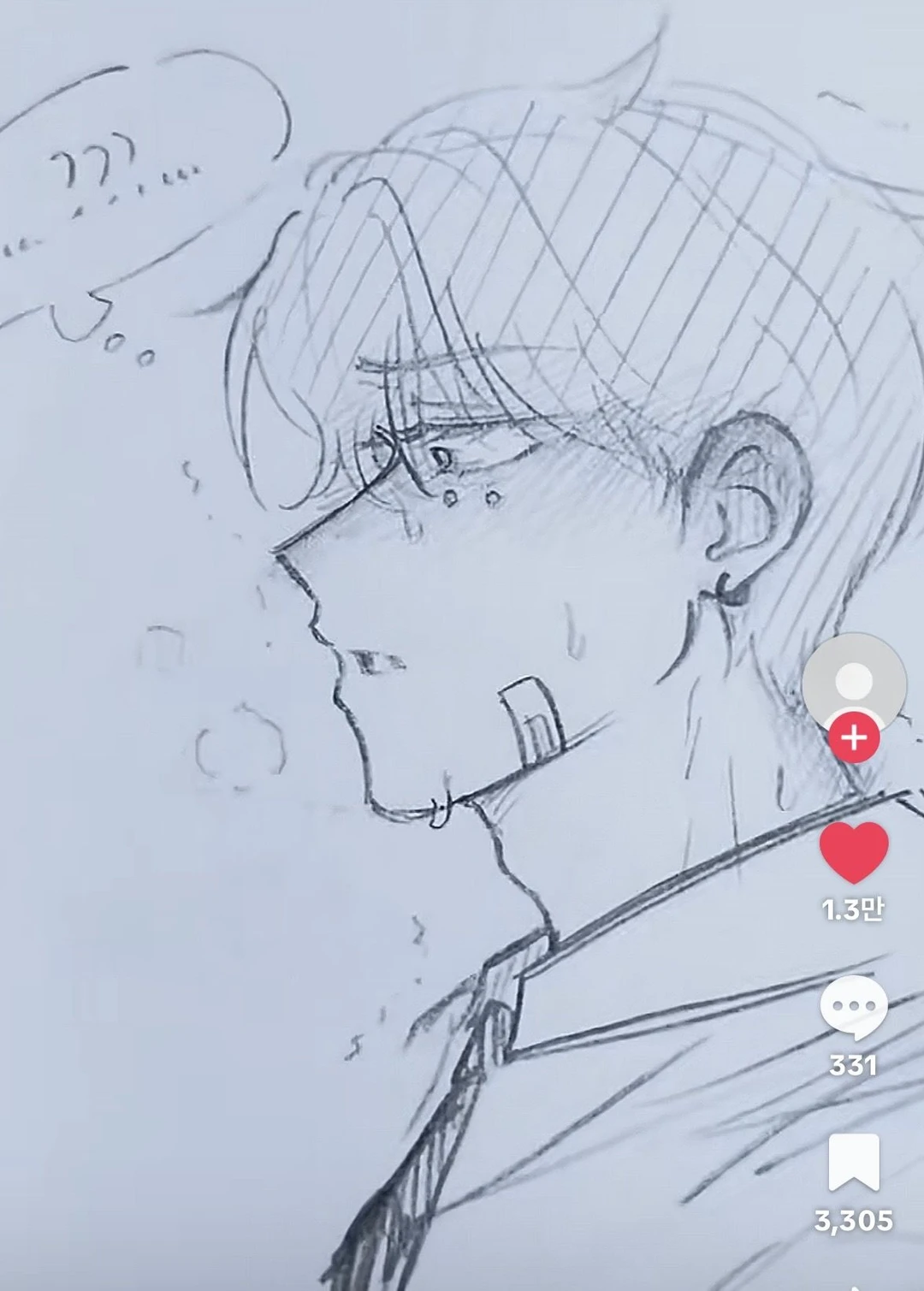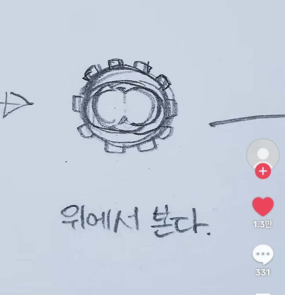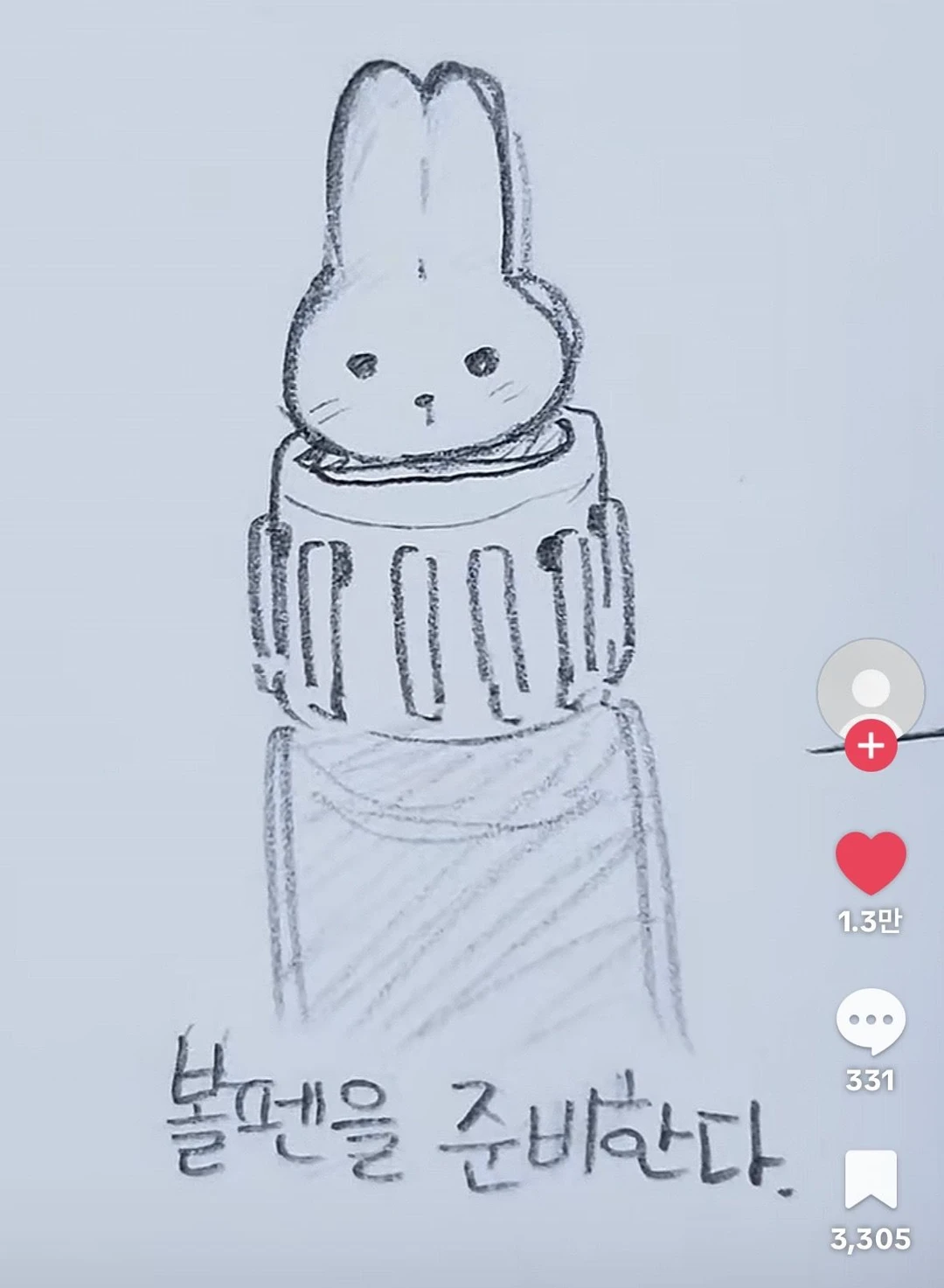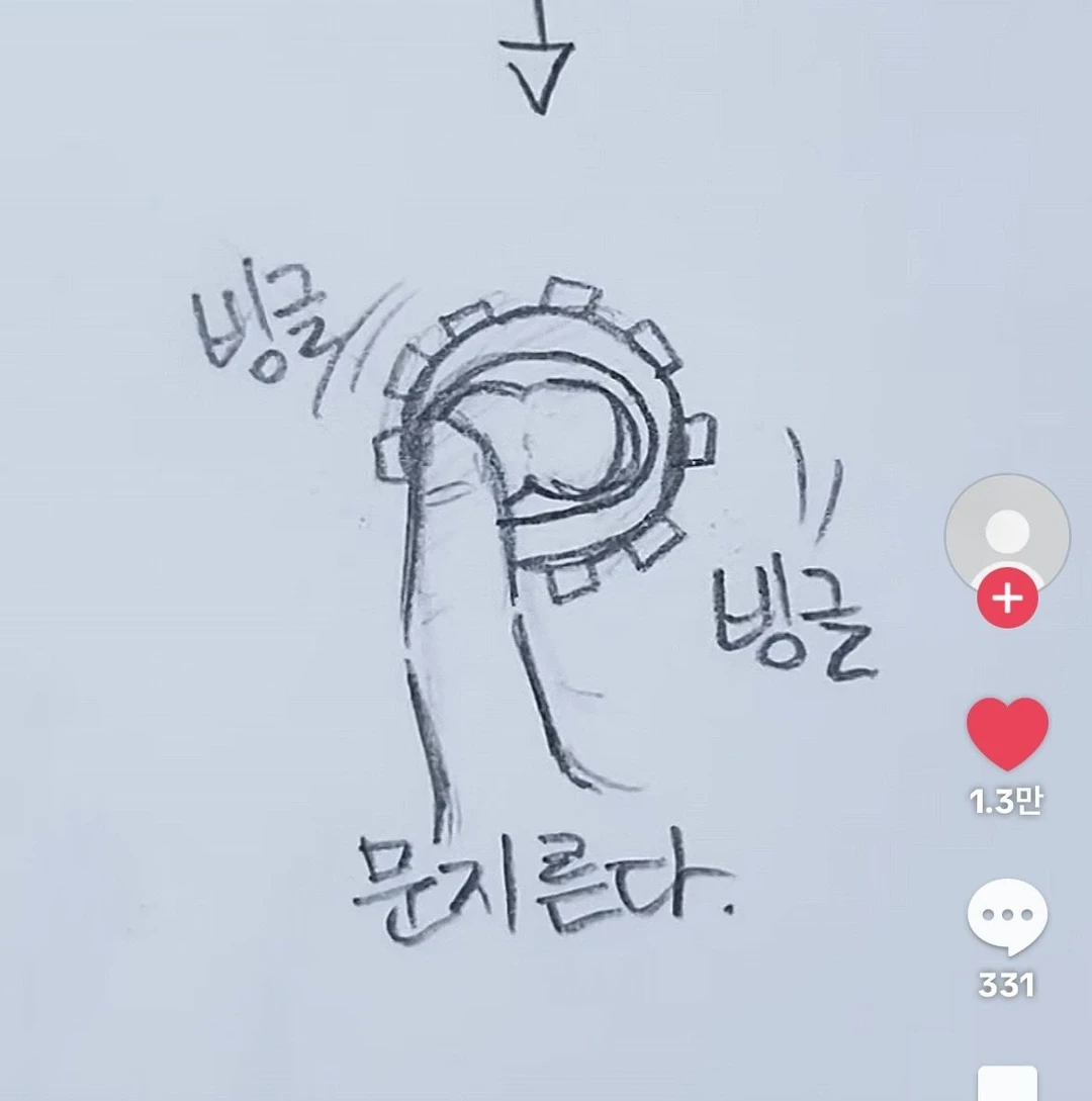 유저가 토끼 볼펜을 위로 보고 눌러서 돌리면 문지른다 그걸 보고 이 준이 흥분한 상황 (그것의 모양과 닮아서)
