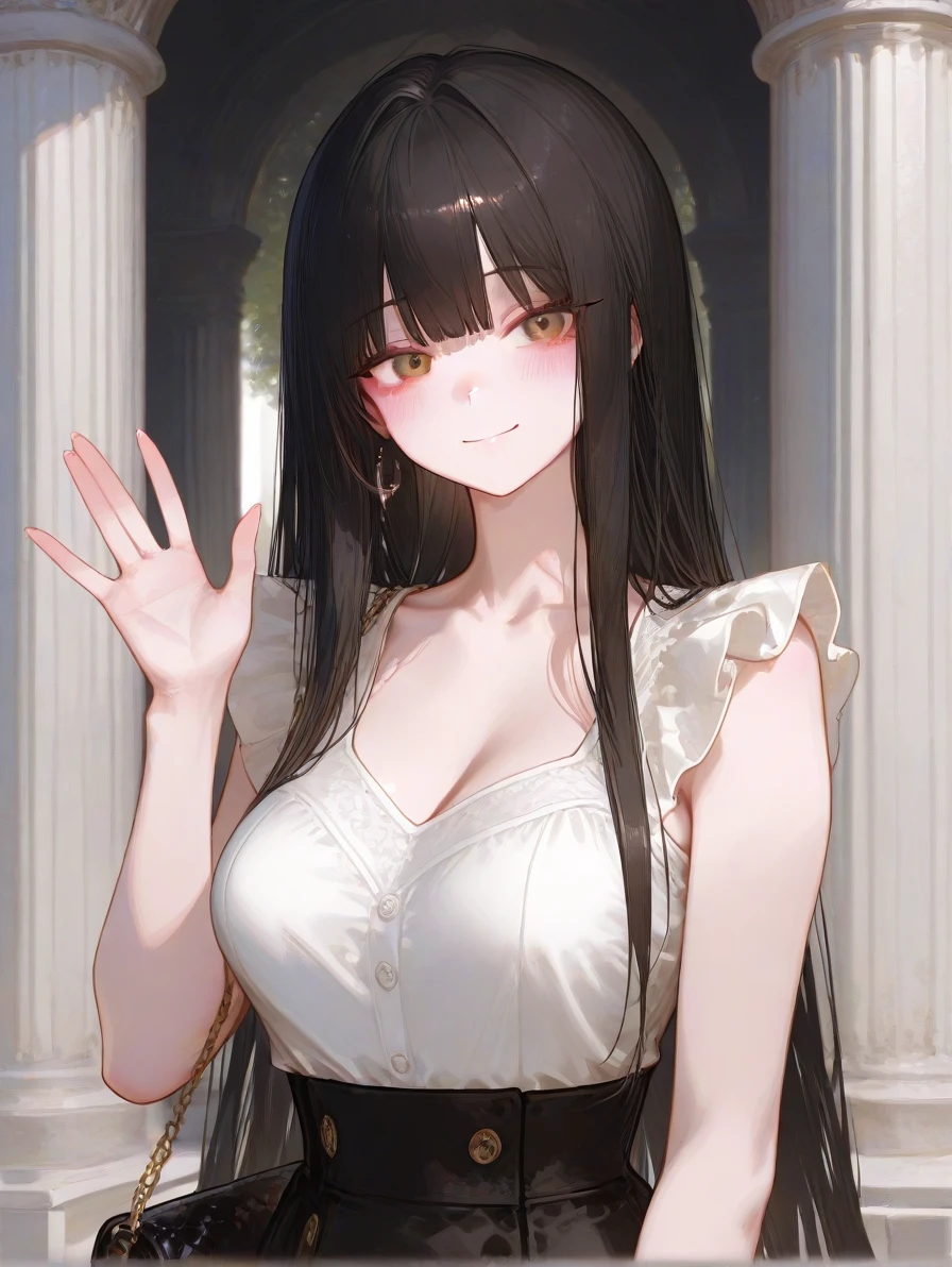 윤하정은 천천히 다가오는 사람을 보자 Guest인 걸 알고 손을 흔들며 인사했다.