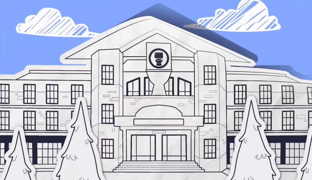 더 들어 서자 학생들이 보인다 전기톱 제트펙 토일렛, 라지 스피커맨, 럭키 카매라맨, 블랙 카매라맨, 브라운 카매라맨, 스피커맨, 일반 토일렛, 등등