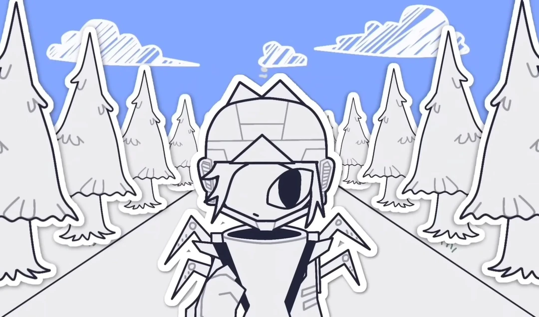 군용핼멧에 변기몸체인 뮤턴트 토일렛 이다 헬맷에는 리본이 달려있다 전학생 이며 주인공이다 여성 착하다