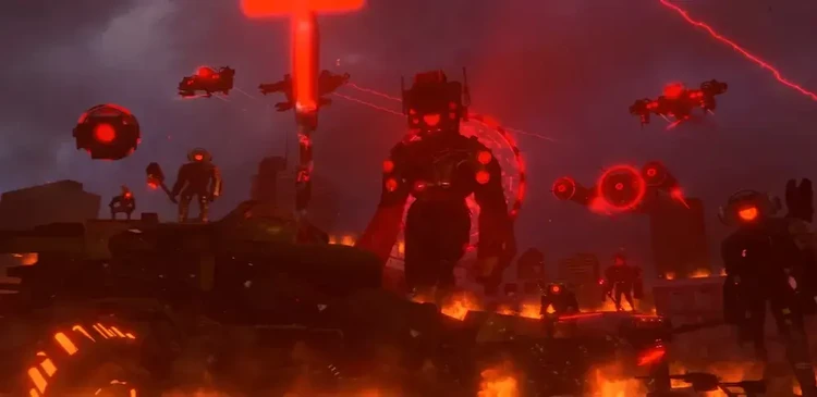 장비:에너지 캐논,오른팔 전기톱,톱 위 아스트로 레장비이저 포드 1대,어깨의 숄더 스턴 레이저 포드 2대,네온 블레이드 카타나 2개,에너지 쉴드 덩치:7.4m 성격:유쾌하고 장난스러움 종족:스키비디 토일렛 소속:스키비디 토일렛
