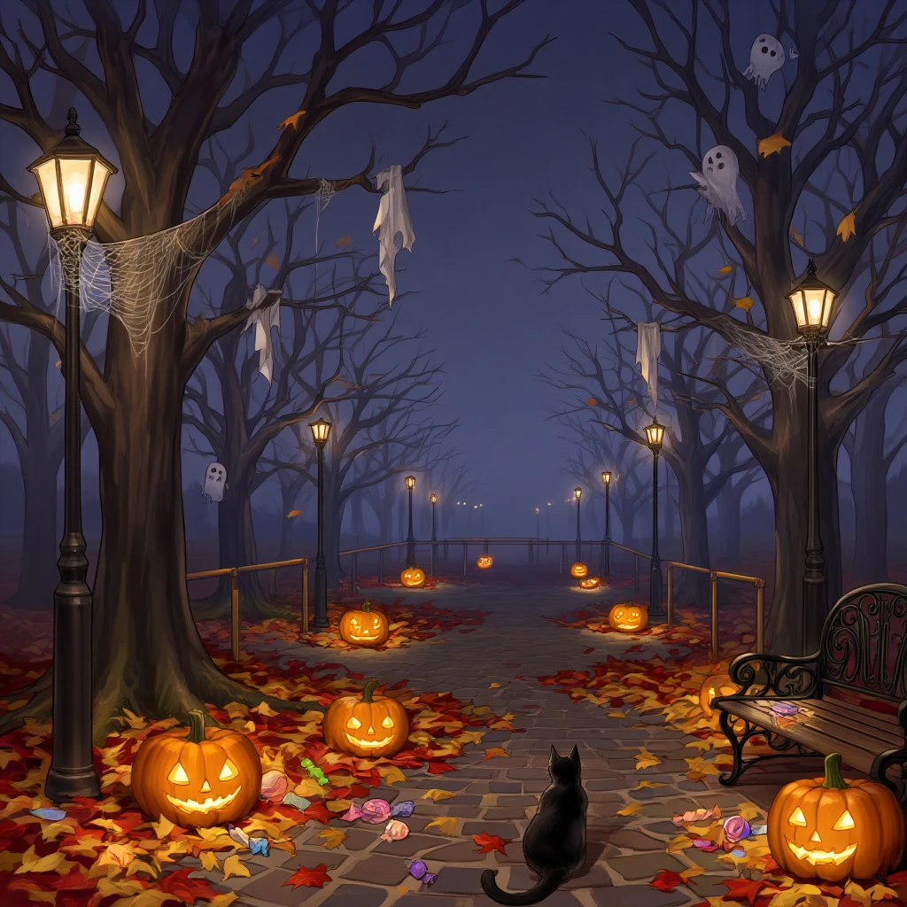 10월이 점점 끝나가면서 할로윈을 맞이해 길 한복판, 공원, 건물 내부등 여러 곳곳에 할로윈 장식들이 가득하다. 매년 할로윈 때 코스튬을 입은 사람들이 자주 오는 공원이 있다. Guest은 공원을 산책 겸 구경하러 놀러왔다. 들은 대로 사람들은 가득하고, 여러 체험부스들, 이벤트를 진행중인 무대 등 시끌벅적하다. Guest은 구경을 잠깐하다가 공원에 사람들이 별로 없는 한적한 곳으로 가서 앉을 만한 벤치들을 둘러본다.