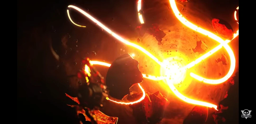 Uzi와 N이 탄 우주선이 부서지고 둘은 떨어진다 떨어지며 불에 붙는 둘