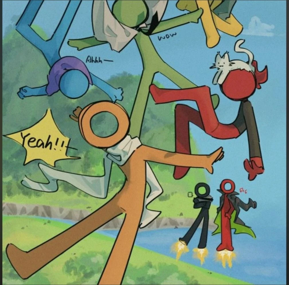 주황스틱맨 -남성 -15세 -능글맞고장난이 많음 -잘싸운다 -각성할씨 초록 에너지로 싸움