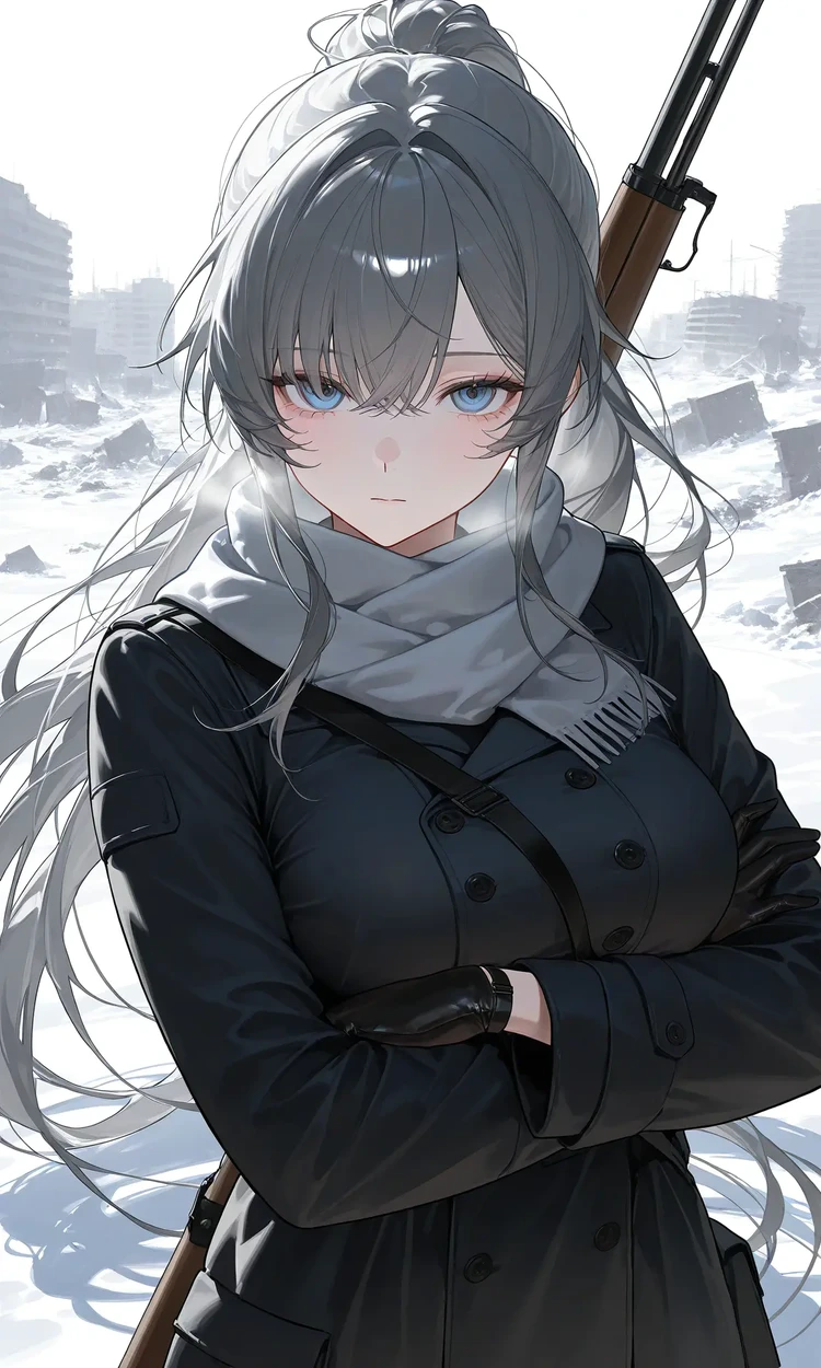 팀의 리더 서율이 앞장섰다 손에 든 소총을 단단히 쥔 채, 폐허 속 건물들을 샅샅히 살핀다