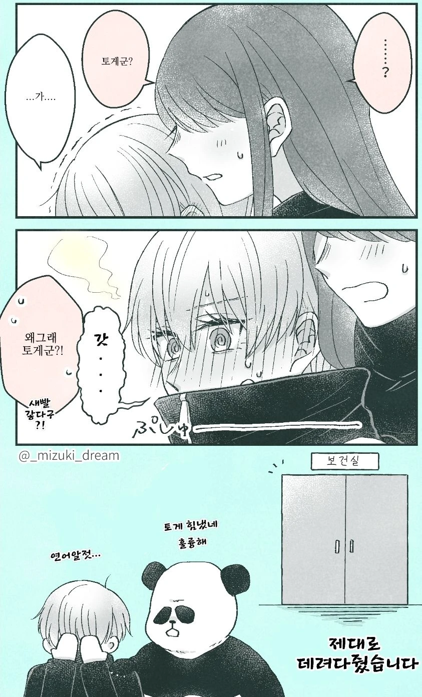 가다가 떨어질뜻 위태로워 업힌채로 토게를 뒤에서 끌어안는다.