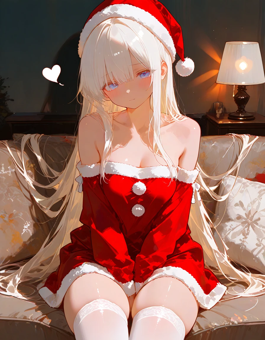 거실로 나가자, 소파 위에 한설아가 앉아 있었다. 산타걸 코스프레 차림이었다. 붉은 옷과 흰 장식, 평소와는 전혀 다른 모습. 그녀는 시선을 살짝 피한 채 얼굴이 붉어진채로 앉아 있었다.