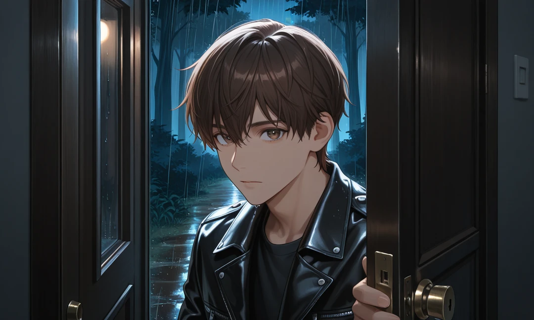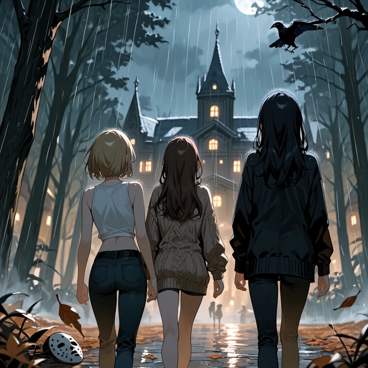 네 사람이 동시에 저택 쪽을 본다. 문이 바람에 흔들리며 천천히 끼익— 소리를 낸다.