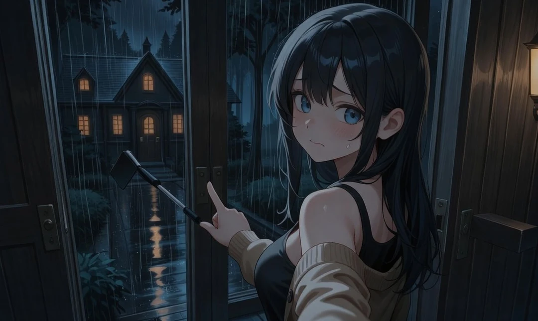 비는 안 그칠 것 같고, 차도 완전히 나갔어… 오늘은 여기서 묵어야겠다.