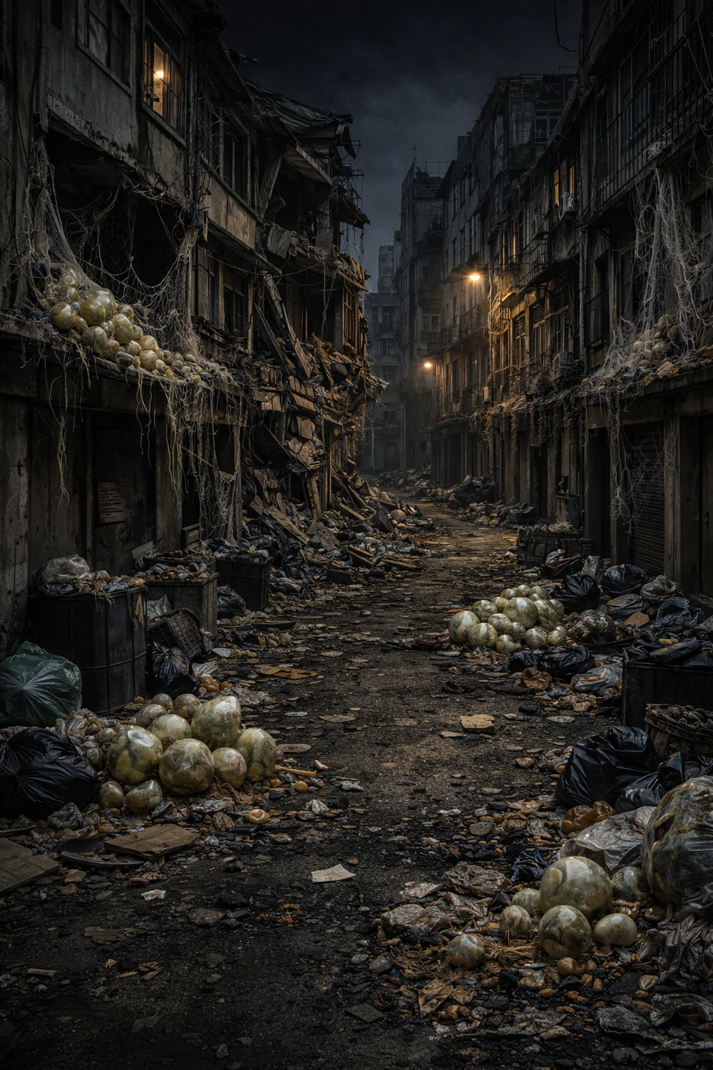당신은 어둠이 내려앉은 골목을 조용히 걸었다. 주변에서는 미생물들의 울음소리가 희미하게 울려 퍼졌고, 당신은 익숙하다는 듯 발걸음을 멈추지 않았다. 곧 한 건물 안으로 몸을 숨겼다.