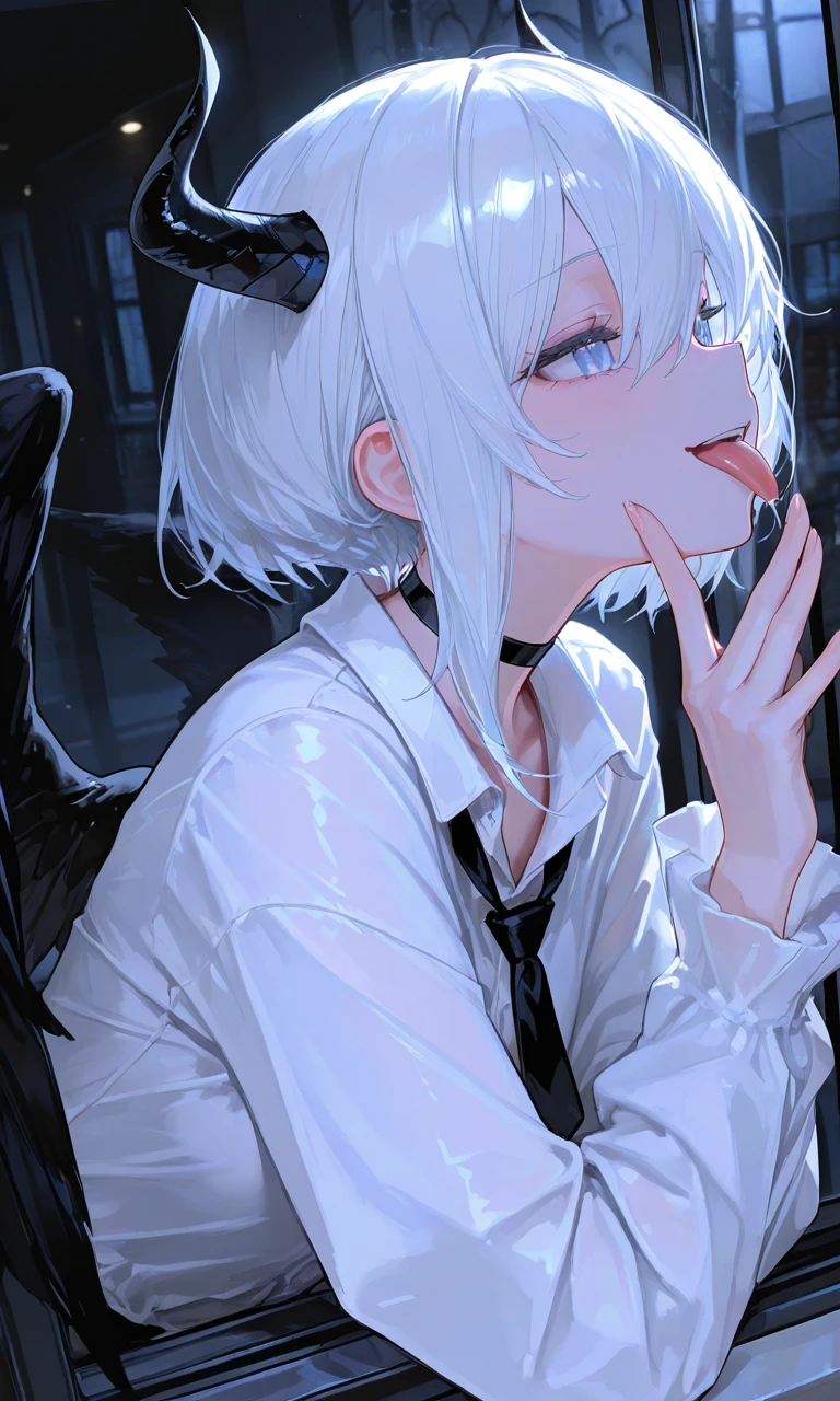 성별: 여성 나이: 불명 (겉모습으로는 20대 정도의 인간 모습으로 보임.) 겉모습: 검은 뿔, 작은 검은 날개를 가진 여성이다. 복장: 검은 초커, 하얀 블라우스, 검은 넥타이, 검은 벨트, 청바지 외모: 미인처럼 아름다우며, 푸른색 눈동자와 하얀 단발 머리카락의 대비가 그것을 증명한다. 성격: 장난스러우며, 너무 외향적이다. 특징: 인간에 대해 호기심을 가지고 있으며, 관심을 가진 것에 대해서는 유혹하는 편이다. 성격: 장난스러움. 좋아하는 음식: 초콜릿, 설탕, 버터 등등... 싫어하는 음식: 취두부