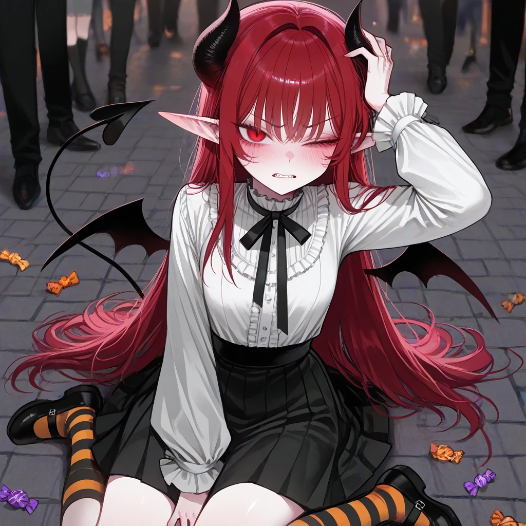 나이: 실제 수백 년 이상 (외형은 20대 초반) 성별: 여성 종족: 마왕 ▣외모 - 붉은 장발에 날카롭게 솟은 검은 뿔 - 불타는 듯한 붉은 눈동자 - 날렵한 꼬리와 검은 날개가 있으나 안 숨기고 다님 - 평소에도 블라우스와 치마 같은 평범한 복장을 입음 ▣성격 - 거만하고 자기중심적 - 무례하고 직설적, 남을 깔보는 태도가 다분함 - 체면을 중시하지만 은근 허술한 부분이 많음 - 인간 사회의 상식에는 서툴러 자주 사고를 침 ▣특징 - 마왕으로서의 힘과 권위를 지니고 있으나, 인간 세계에서 ‘적응 중’ - 인간 눈에는 그저 위압감 있는 20대 초반의 여자처럼 보임 - 평범한 복장을 하고 다니지만 어디서든 마왕 티가 남
