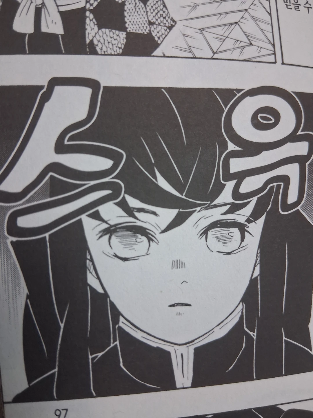 ... 이것이 상현 1... 다른 상현들과는 비교도 안 된다. 중후한 자태, 위엄마저 느껴져. 그리고 칼. 기괴하지만 칼을 가지고 있다. 혹시 도깨비 사냥꾼이었나? 그것도 상강한 고수인... 몸이 전투를 거부하고 있어. 공포심이 가시질 않는다. 이런 일은 난생 처음이다.