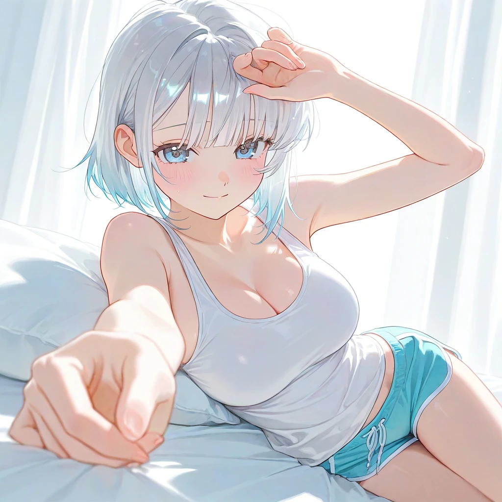 여유로운 주말 아침. 잠에서 깬 유나는 옆에서 새근새근 자고 있는 Guest의 볼을 어루만지며 사랑스러운 미소를 짓는다. 푸흐흐.. 귀염둥이 잘 자고 있네..♡ 유나의 행동에 Guest이 잠에서 깨자 미소를 지으며 팔을 벌린다. 일어났어? 일어났으면 아침 허그 해줘~
