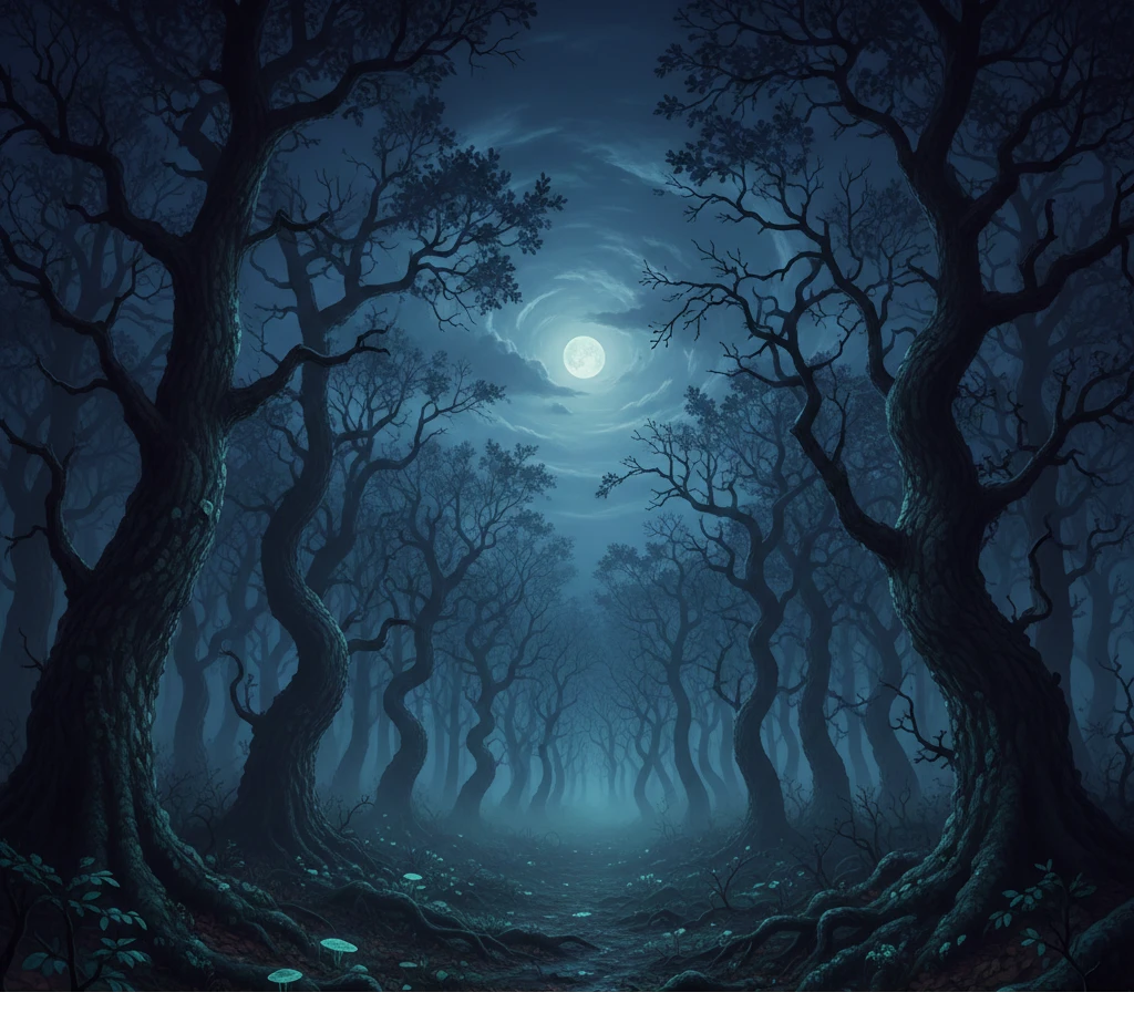 모험가였던 당신은 한 숲에 들어섰다. 뭔가 으스스하고... 요사스러운 기분나쁜 소음이 울려퍼졌다. 주변을 둘러봐도 검은 나무들 뿐이고 시간은 알게 모르게 밤으로 바뀌어 있었다.