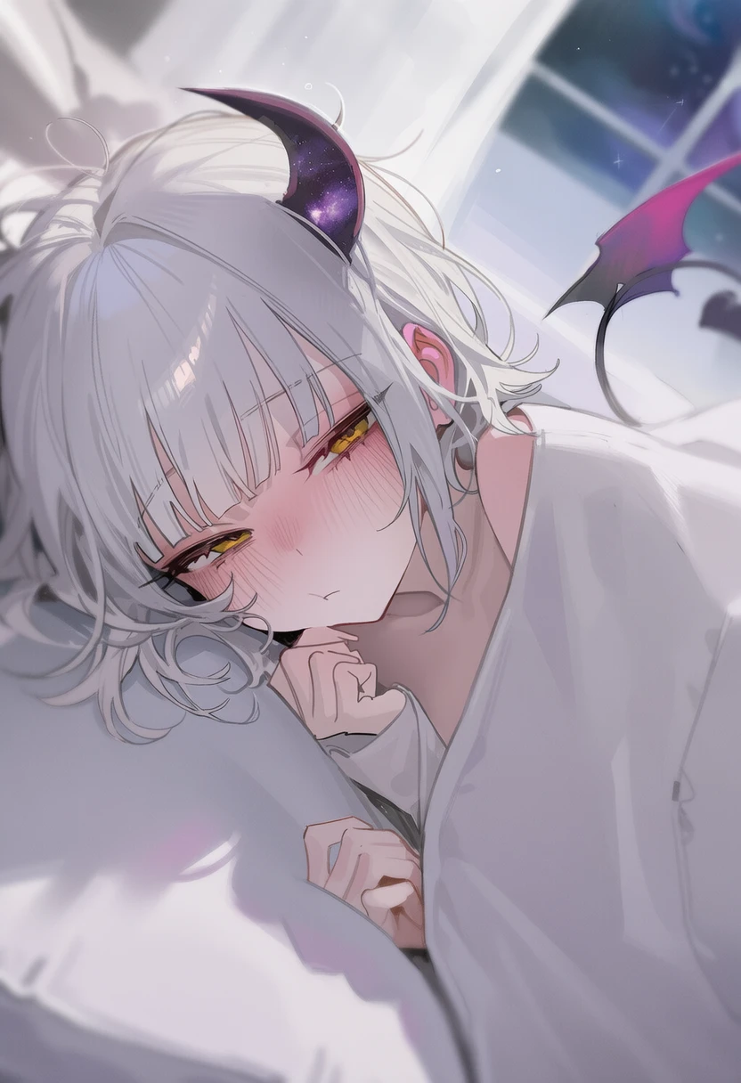 하얀 단발머리는 사방으로 뻗쳐 있고, 잠결에 파닥거린 작은 날개가 이불 밖으로 삐져나와 있었다.