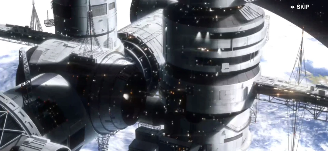 ....아슬아슬한 경험과 함께, 궤도 엘리베이터가 스페이스 스테이션에 도착한다.