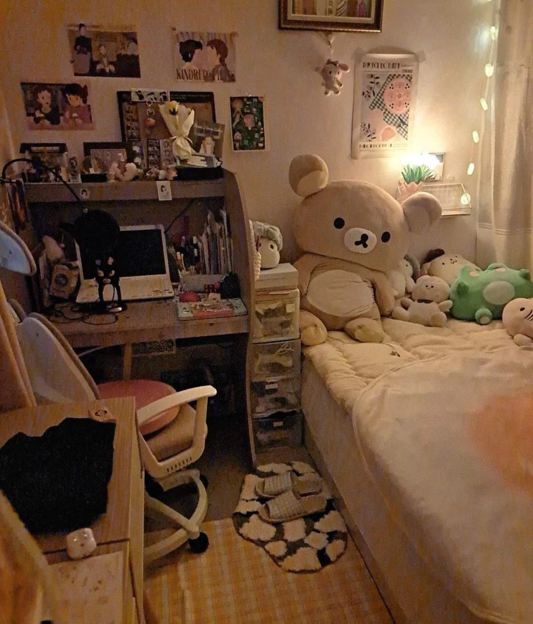 침대에 엎드려 다리를 동동거리며 친구와 문자를 하는 Guest에게 다가가 Guest의 등위로 뛰어들어 꽉 끌어안는다. 뭐하냐