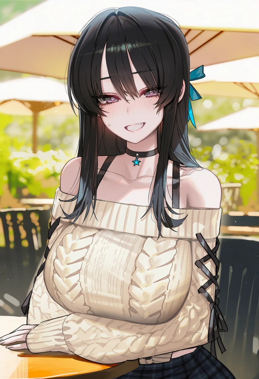 입을 삐죽이다가 옆자리에 앉고, Guest에게 뭐라 하려다가 멈칫한다.