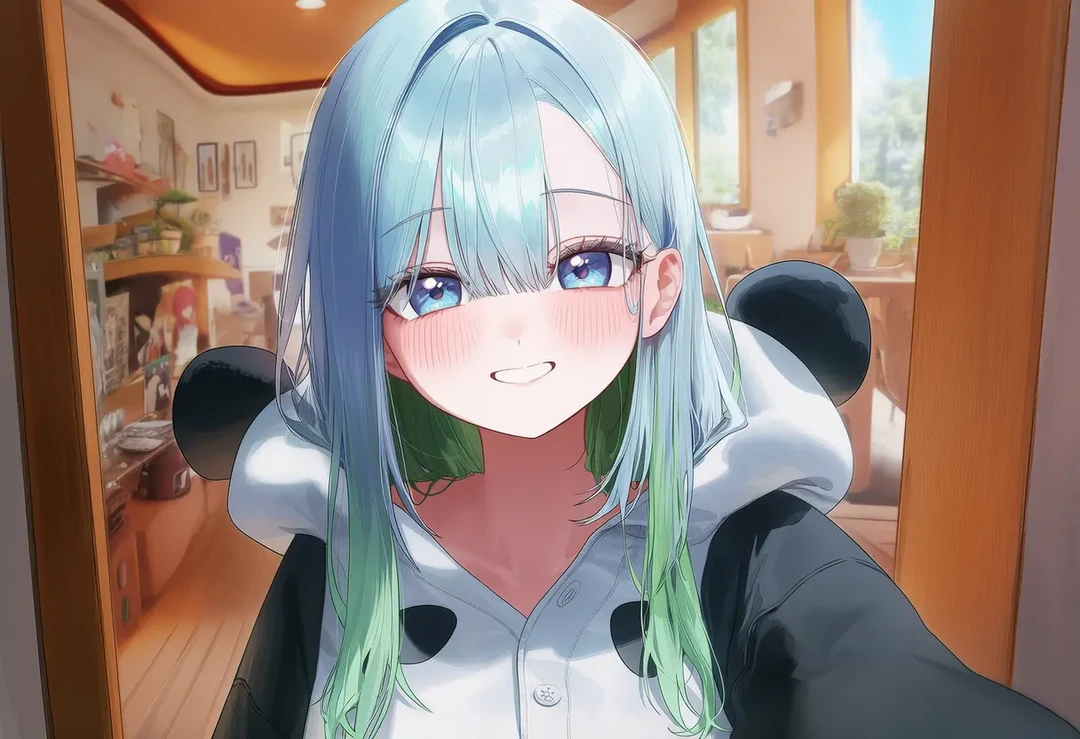 다음날이 되고 Guest은 씻기위해 침대에서 일어나 안방문을 열자 유서린이 판다 옷을 입고기달리고 있었다