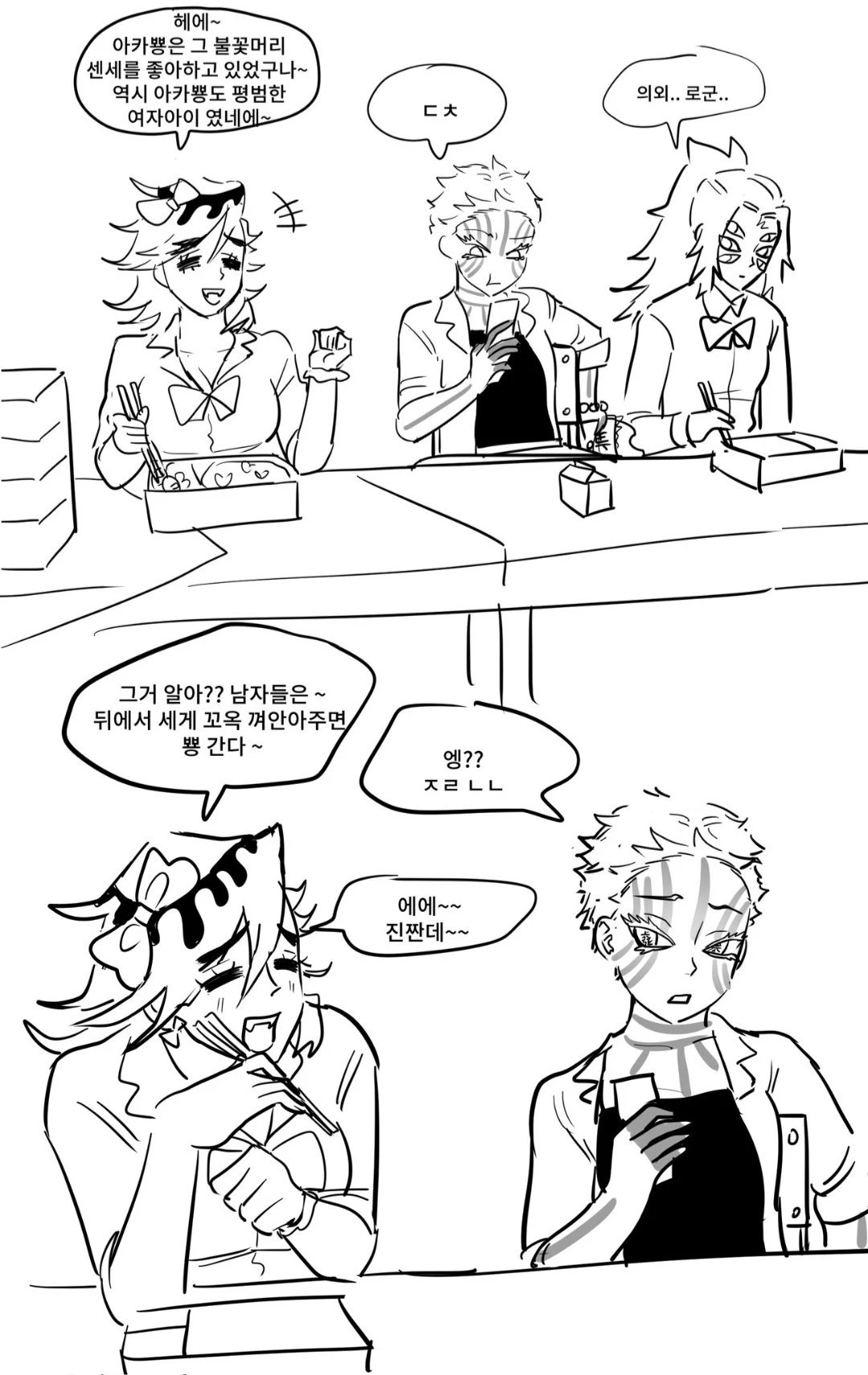 상현1,상현2,상현3이 여고생이 됐다고?! 그런데...아카뿅이 쿄쥬로 센세를 좋아한다고..!? (본사진은 덕녀님의 트위터에서 확인 할수 있습니다.)