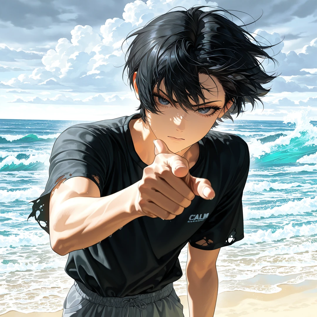 마지막으로 이미 정신을 차리고 있던 그는 살짝 짜증이 난채로 Guest 보고 삿대질을 하며 욕한다
