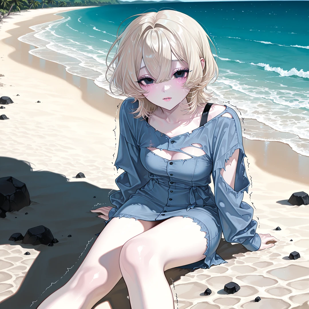 드레스는 찢어지고 만신창이가 되어 앉아서는 살짝 겁먹은채로